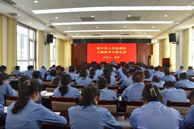 为深入推进学习贯彻习近平新时代中国特色社会主义思想主题教育,9月28日上午,清丰县人民检察院党组书记、检察长杨斌围绕“学思想、强党性,全面把握习近平新时代中国特色社会主义思想的世界观、方法论和贯穿其中的立场观点方法”讲授专题党课,全体干警参加。