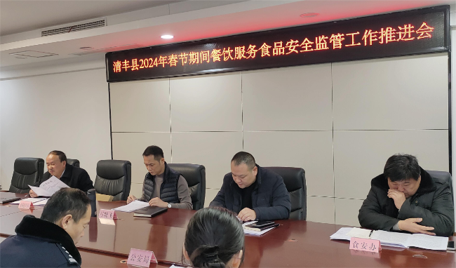 为有效预防食品安全事故的发生,让广大人民群众过一个祥和、愉快、安全的节日。1月30日上午,我县召开2024年春节期间餐饮服务食品安全监管工作推进会。副县长弓晓飞出席会议并讲话。县政府办、食安办、市场监督管理局、教育局、公安局、商务局、卫健委、19个乡镇(办)分管副职共计40余人参加会议。