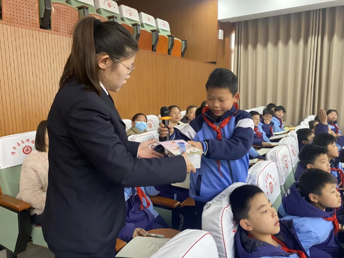 最后,未检干警向学生发放文具盒、笔记本、尺子等学习用品以及《未成年人保护法》《防止校园欺凌 拒绝校园暴力》《防性侵》等普法宣传手册。