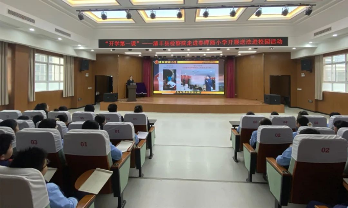 2月29日上午,清丰县检察院联合团县委并邀请人民监督员共同走进——春晖路小学开展“开学第一课”法治宣讲活动,全校200余名师生及家长代表参加。