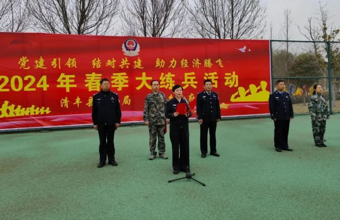 春回大地万物苏,砺剑强警正当时。为全面贯彻落实全国、全省和全市公安工作会议精神以及清丰县“拼投目、促投资、优服务”暨三级干部大会、县委政法工作会议精神,聚焦战斗力标准,落实实战化训练要求,加快形成和提升新质公安战斗力,3月18日早上,清丰县公安局、马村乡政府在县体育场举行“党建引领 结对共建 助力经济腾飞”2024年春季大练兵启动仪式。市公安局政治部党总支书记、专职副主任刘红伟,县政府副县长、县公安局党委书记、局长张军英,市公安局教育训练科科长宋洋出席,县公安局班子成员、除值班以外的全体民辅警职工,马村乡领导干部、各村党支部书记,共450余人参加。
