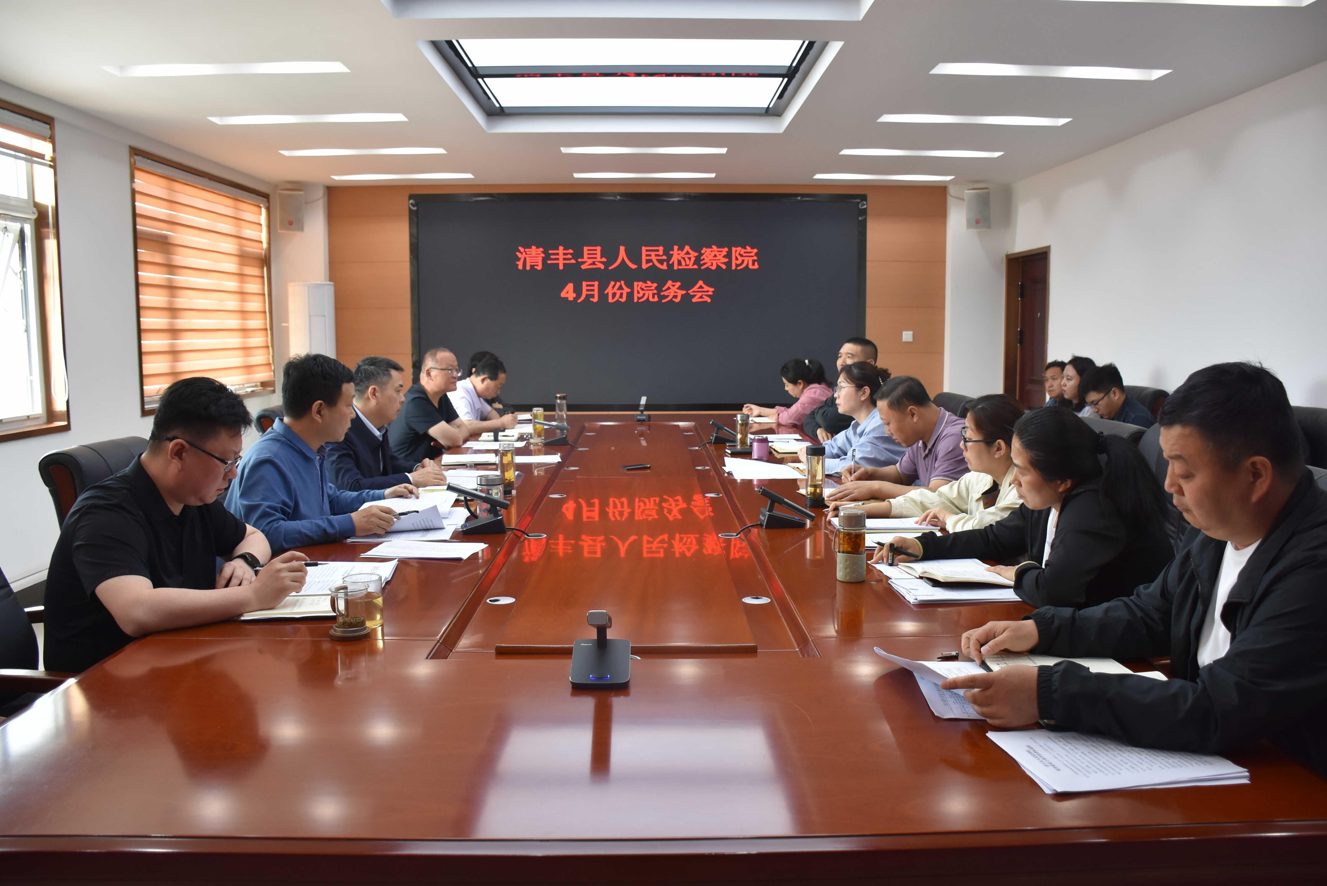 5月7日,清丰县人民检察院召开2024年4月份院务会,各部室围绕典型案例、荣誉争创、案件办理情况及下一步工作打算进行汇报。分管院领导结合分管工作实际进行点评,并对下步工作提出意见建议。院党组书记、检察长杨斌出席会议并讲话,班子成员、检委会专职委员、各部门负责人参加会议。
