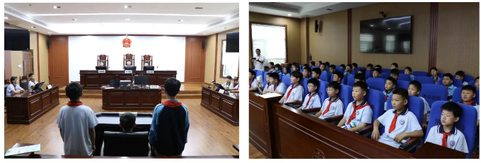 “同学们,我们即将去一个神秘的地方,你们准备好了吗?”“准备好啦!”在法庭里,讲解员耐心细致地向同学们讲解法袍、法徽、法槌的含义以及法庭组成人员和法庭审理程序和法庭的职能作用。“那么谁愿意来扮演这个角色......“在介绍法庭知识后,讲解员向同学们发出了邀请,同学们情绪高涨,在讲解员有序引导下,一个个“小法官”走上审判台、敲响法槌,过起了“法官”瘾,切身感受司法的公正和法律的威严。“我长大了也要当法官!”一位同学在体验法官的角色后坚定地说道。