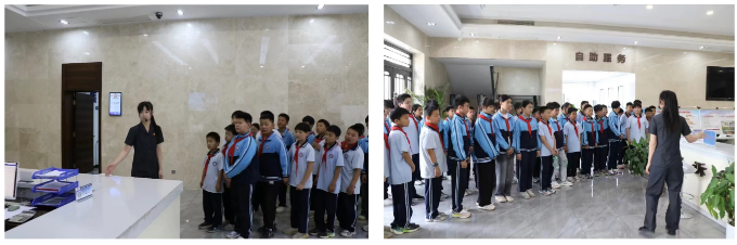 在法院干警的带领下,同学们队列整齐走进诉讼服务中心,讲解员用浅显易懂的语言详细地向他们介绍导诉区、自助立案区、材料中转区等相关区域,介绍了法院的职能,并引导学生们体验了自助立案区的智能诉讼相关平台设备。同学们对诉讼服务中心内的智能设备充满了好奇,提问了许多感兴趣的问题,讲解员一一进行了解答。