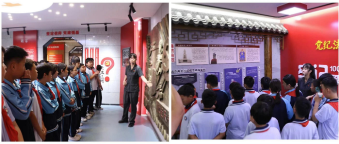 紧接着同学们在讲解员的带领下来到党建廉政基地感受法院的文化,引导学生们从红色经典中汲取前行力量,树立正确的人生观、价值观、道德观,并鼓励大家努力学习科学文化知识,学法守法、自立自强,成为国之栋梁。