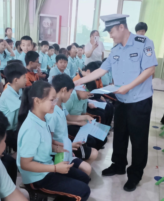 最后,民警还发放了《致学生、家长的一封信》、“知危险 会避险”宣传页、倡议在校学生充分发挥“小手拉大手”的作用,课后及时把学到的安全防护知识传播给自己的父母和亲朋好友。