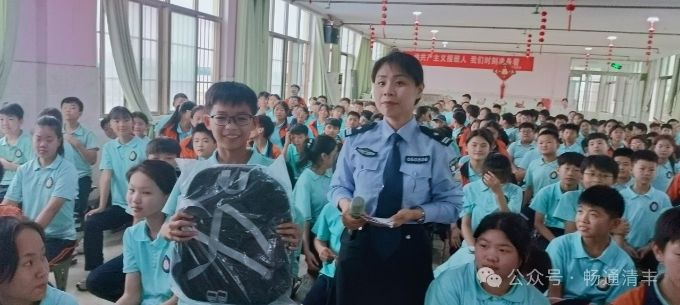 为提高广大农村地区群众交通安全意识,不断提升学生道路交通安全意识,预防和减少道路交通事故发生,6月21日下午,清丰县公安局交警大队以“小手拉大手”的形式,走进清丰县马村乡成龙小学开展“美丽乡村行”交通安全巡回宣讲活动。