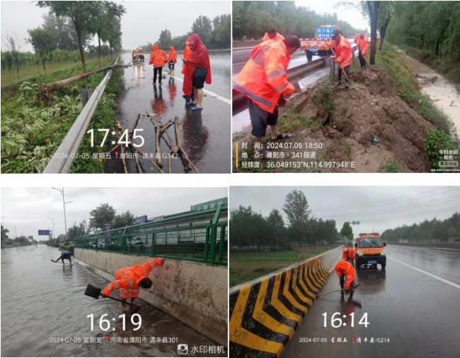 7月5日,我县迎来一次强降雨。为应对此次强降雨天气,清丰县公路事业发展中心及时启动干线公路防汛应急预案,积极采取措施,加大干线公路巡查频次,做好干线公路防汛应急抢修工作,全力保障干线公路安全畅通。