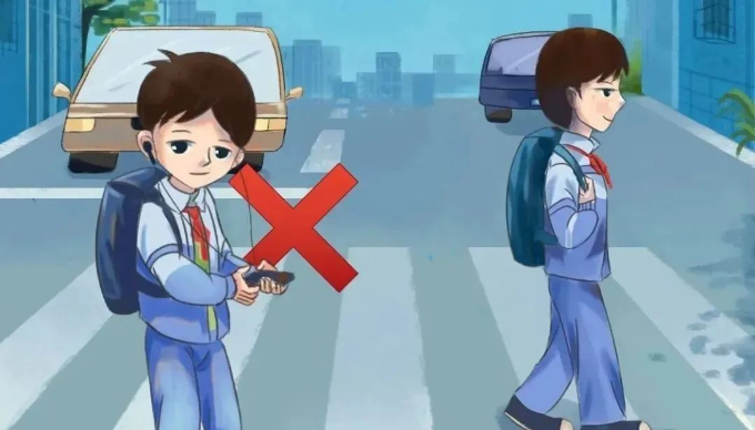 走路要集中注意力,切勿在道路上嬉戏、打闹,不做“低头族”;过马路时要走人行横道,遵守“红灯停、绿灯行”的交通规则;不在汽车临近时突然横穿马路;不要翻越隔离护栏。