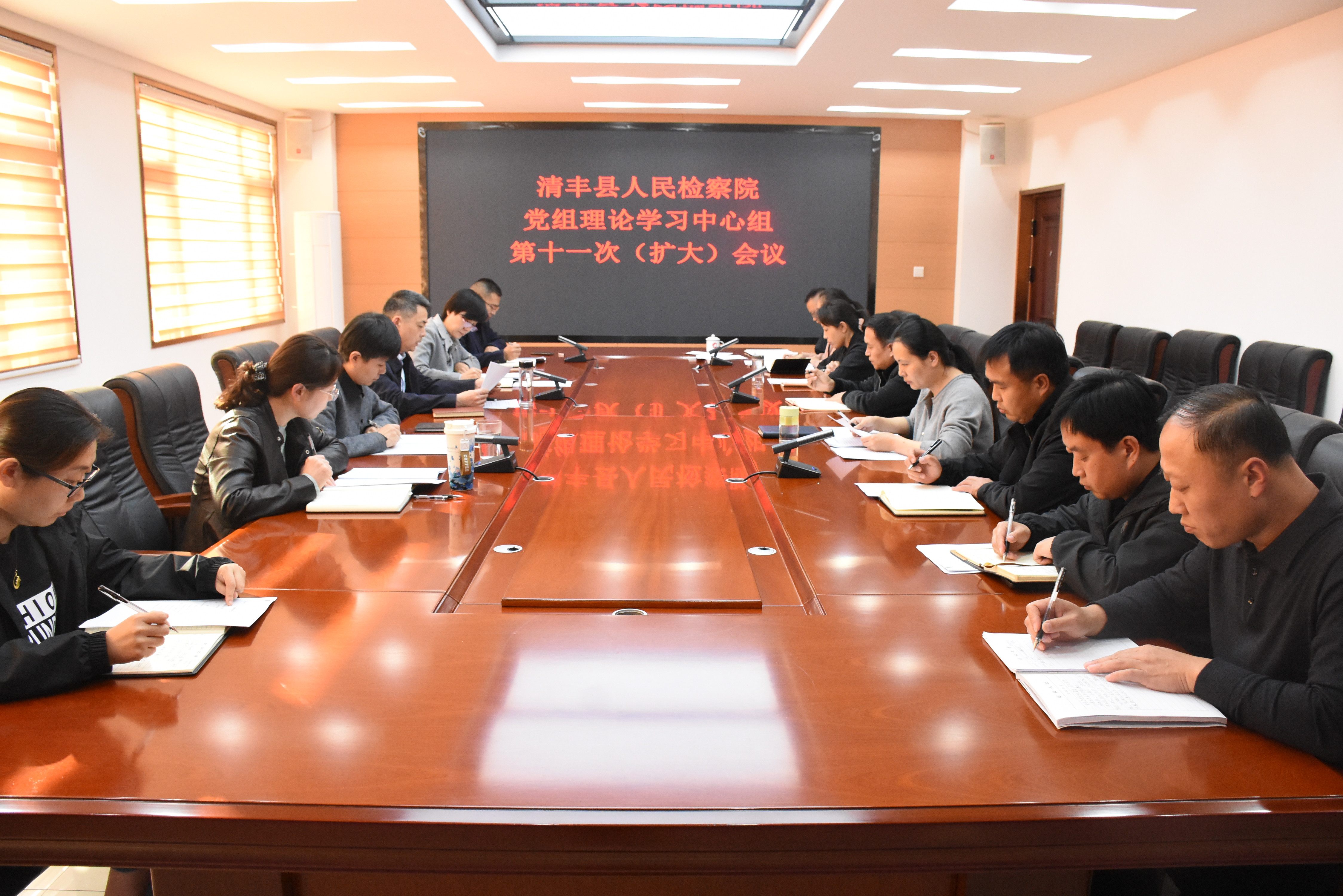 10月29日,清丰县检察院组织召开2024年党组理论学习中心组第十一次(扩大)会议,重点学习习近平在福建考察调研时讲话精神,习近平总书记关于选人用人的重要论述,习近平总书记关于巡视工作的重要论述,最高检党组会、检委会研究部署加强检察管理、为基层减负工作等内容。会议由院党组书记、检察长杨斌主持,党组成员、检委会专职委员及各部门负责人参加。