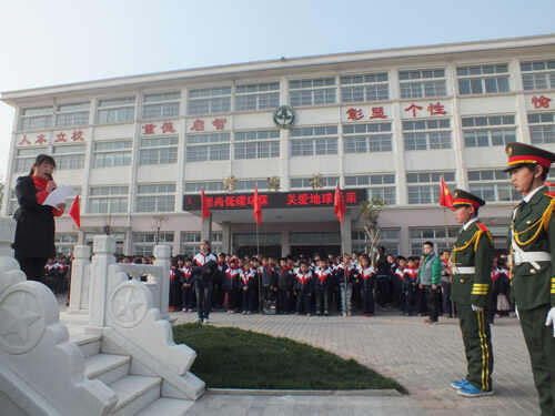 在第44个世界地球日到来之际,清丰县第一实验小学少先大队部利用升旗仪式向全校少先队员发出了“崇尚低碳环保,爱护地球母亲”的倡议。