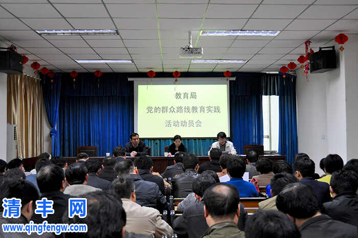 党组书记、局长田道珍在报告中指出,开展以为民务实清廉为主要内容的党的群众路线教育实践活动,是党的十八大作出的一项重大部署,是新形势下坚持从严治党、加强党的建设的重大决策。全县教育系统应紧密结合工作实际,增强教育实践活动的针对性和实效性。聚焦解决“四风”突出问题,统一思想,充分认识开展群众路线教育实践活动的重大意义。认真贯彻“总要求”,找准问题,强化群众观念和宗旨意识。紧紧抓住“三个关键环节”,坚持以整风精神推进教育实践活动。紧密结合清丰教育实际,精心组织,确保教育实践活动扎实有效开展。