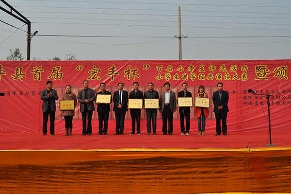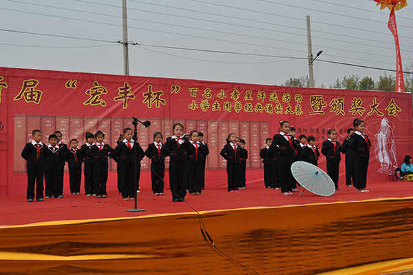 11月8日,清丰县首届“宏丰杯”百名小孝星评选暨小学生国学经典诵读大赛决赛在固城乡张曹村举行。来自全县的8支小学代表队参加了比赛。