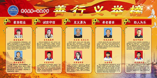为大力培育和践行社会主义核心价值观,实现一中梦,该校开展身边好人推荐活动。广大职工从“助人为乐、见义勇为、诚实守信、敬业奉献、孝老爱亲”等方面推荐出各方面优秀人选。突出的表现,感人的事迹激励着广大师生决心以他们为榜样大力弘扬人间真善美,争传社会正能量。