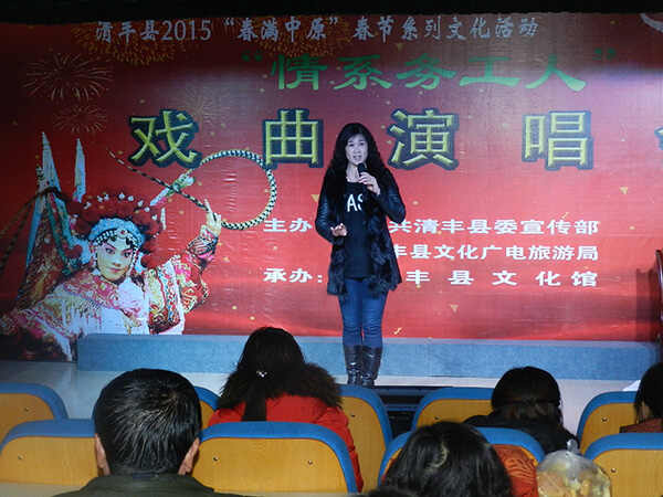 1月28日下午,由中共清丰县委宣传部、县文化广电旅游局主办,县文化馆承办的2015“春满中原”春节系列文化活动之“情系务工人”戏曲演唱会在文化馆小剧场举行。