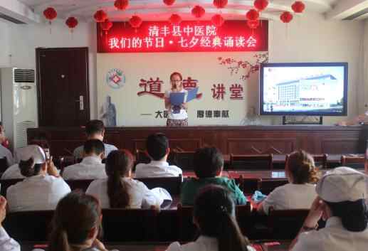 为深入贯彻县文明办活动精神,深化“幸福家庭日”和“我们的节日·七夕”主题活动,倡导全院职工“弘扬忠贞爱情,夫妻和睦相处,共创家庭幸福”。8月8日上午,我院组织开展了““我们的节日·七夕” 中华经典诵读活动。