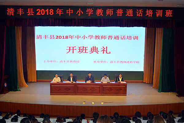 5月25日—27日,清丰县2018年中小学教师普通话培训班在县和义路小学报告厅隆重举行。本次培训由县教育局主办,县教师进修学校承办,县教育局副书记、副局长黄东明,县教师进修学校书记、校长闫战民,县教育局语委办主任刘书玲,县教师进修学校副书记、副校长刘婷婷出席了开班仪式。本次培训共计900余人,分三期进行。