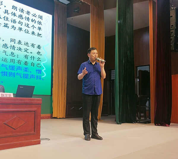 本次培训邀请的是濮阳市职业技术学院艺术学院院长、国家级普通话水平测试员魏汉武教授,分别就单音节字的发音、多音节词语的发音、短文朗读、命题说话等四项内容对学员们进行指导。通过讲解规范发音要领、教师示范朗读、学员跟读和现场测评等方式,切实提高了学员们的普通话水平,取得了良好效果,赢得广大学员的好评和赞誉。
