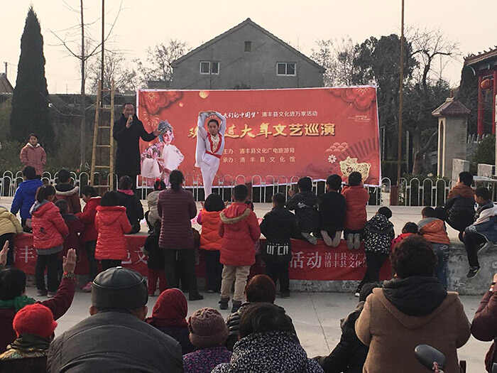 1月28日至1月30日,由县文广局主办、县文化馆承办的2019“我们的中国梦”清丰县文化进万家——欢乐过大年文艺巡演活动分别走进韩村乡、古城乡、瓦屋头镇、六塔乡、纸房乡5个乡镇的5个贫困村为广大村民们献上一场精彩纷呈的“文化视听盛宴”。