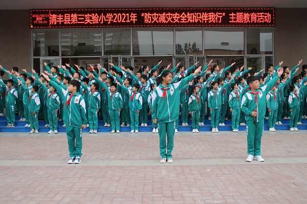 温馨五月鸟语花香,幸福笑脸溢满校园,安全知识时刻牢记,党史学习增强信仰。5月12日是我国第13个“防灾减灾日”,为增强全校师生时刻树立安全意识,提升减灾防灾安全防范能力,2021年5月10日,清丰县第三实验小学举行“防灾减灾安全知识伴我行”主题教育活动,全校师生4300余人参加。