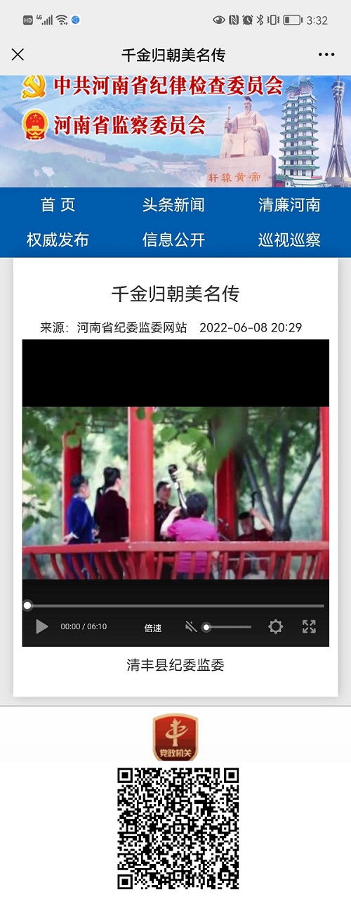 清丰县河南坠子为濮阳市第五批非物质文化遗产代表性项目名录,其代表性作品《千金归朝美名传》于2022年6月连续被省纪委监委和学习强国等平台报道。