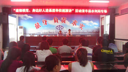 7月12日下午, 清丰县水利局举办“道德模范、身边好人进基层单位巡演讲”活动。
