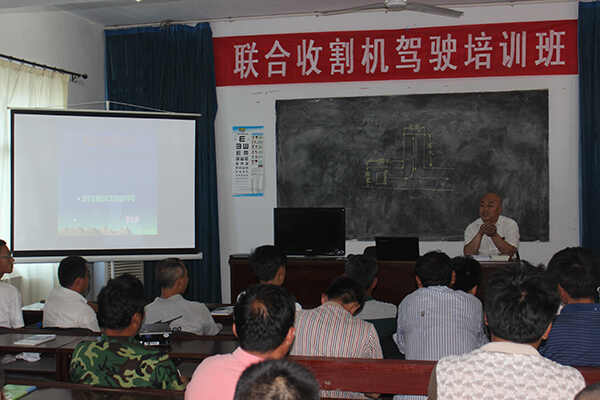 培训班上,首先对“三夏”农机作业特点作了介绍,然后结合农机安全事故事例,对联合收割机安全生产常识作了生动形象地讲解,并对有关的农机安全法律法规知识、农业机械的基本构造、原理、操作使用、维修保养等进行了详细讲解,最后对参训学员进行了考核。