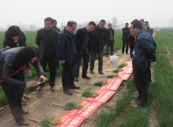 在县农技中心主任董红纯、农业局副局长刘平凡、植保站站长董彦防及植保技术人员的带领下分别对清丰县小麦全蚀病重发区药剂包衣试验基地、小麦田麦播期种衣剂对比试验基地、小麦病虫害农药减量增效示范区和小麦农艺农机融合种植模式项目基地进行了实地调研,并对我县小麦植保植检工作给出了肯定。