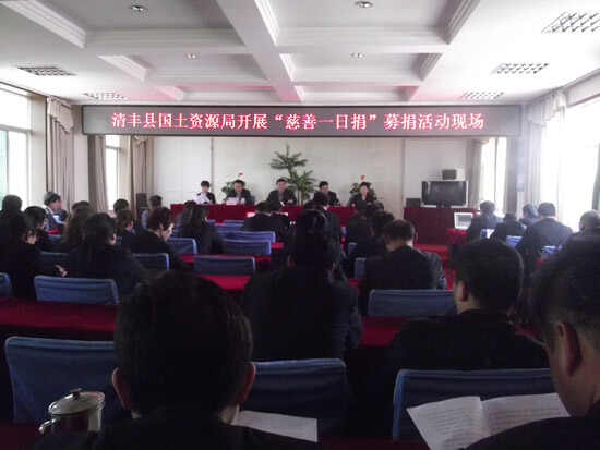 为弘扬慈善精神,传播慈善理念,倡导救危济困,乐善好施的传统美德,2013年4月28日,清丰县国土资源局按照县委、县政府统一部署,坚持“自愿、奉献”的原则在局四楼会议室组织开展了以“捐爱心,献真情”为主题的“慈善一日捐”活动。党组成员以身示范,党员干部积极带头,广大职工踊跃参与,共累计募集资金5200元。“慈善一日捐”活动使国土干部职工再次以实际行动践行了“慈善精神”,展现了国土卫士文明风范,促进了以政府为主导与社会互助相结合的社会救助体系建设,推动了清丰公益事业健康发展,促进了富裕、和谐、美丽新清丰建设!