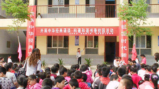经典诗文是中华民族优秀传统文化的结晶,蕴含了许多做人做事的道理和传统美德。书香能致远,诵读润心田。为引领广大少年儿童亲近经典、热爱经典,弘扬民族传统,传承中华经典文化,濡养具有深厚文化内涵的时代新人,形成以先贤为楷模,勤勉学习,奋发有为,立志成才的思想;营造“人人诵读中华经典”浓郁的书香校园文化氛围。清丰县国土资源局以“净化学生心灵,培养儿童德育”为根本,以关爱未成年人工作与“读书月活动”相结合,以经典诵读和德育教育相结合,以经典诵读与提高学生语文素养相结合,4月28日,在柳格镇柳格集小学与500余名师生共同开展了“中华经典诵读,构建和谐书香校园”比赛活动。