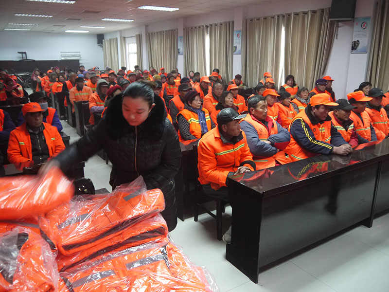 会议由慈善总会会长杨相俊主持。杨相俊首先对环卫工人的敬业精神表示了肯定及高度赞扬,并指出,本次慈善总会出资4万元,在濮阳最好的服装厂(台前雪鸟服装厂)为我县环卫工人定制了400余套高领加厚棉坎儿,以帮助环卫工人度过严冬。