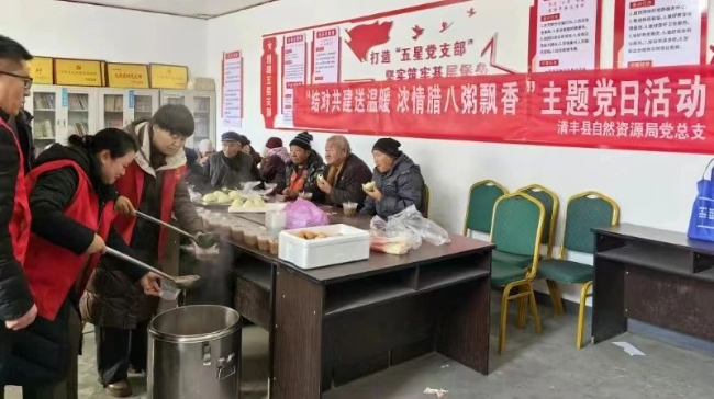 为深化“手拉手”结对共建活动,弘扬中华民族传统文化,营造浓厚节日氛围,在腊八节来临之际,1月15日,清丰县自然资源局党总支组织党员干部前往帮扶村古城乡马庄村,开展“结对共建送温暖 浓情腊八粥飘香”主题党日活动。