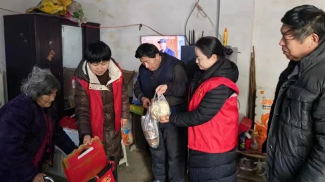 对村内高龄、行动不便的老党员,开展“上门送粥、欢庆腊八”志愿服务,党员志愿者们将分装好的腊八粥、包子、鸡蛋和祝福春联送到老党员手中,了解身体情况、生活状况,并为他们送上节日祝福。