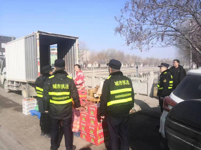 加强市容管理,确保环境整洁有序。根据春节期间商铺店外经营、流动摊贩占道经营情况陡然增多特点,执法大队实行网格化管理,重点加强主次干道、春节临时市场、商超市场、广场游园等周边区域管理,采用车巡和步巡相结合方式不间断进行巡查管控,查处流动摊点占道经营,规范门店外摆经营秩序。对发现的占道经营、乱摆乱占、乱停乱放等现象,采取包容审慎、教育劝导为主的方式,通过“柔性执法”让城市管理有“年味”更有“人情味”。