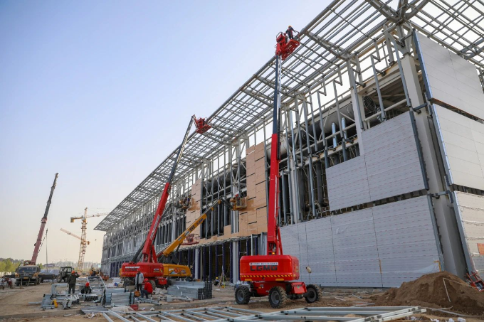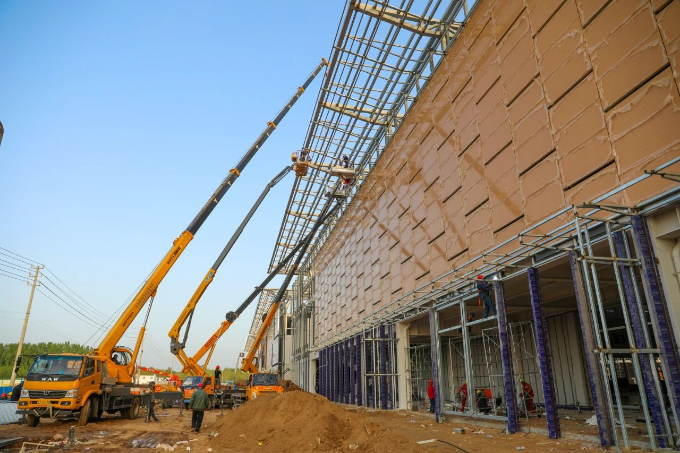 截至目前,该项目6个场馆已完成钢构主体,刚性垫层浇筑完成85%,正在日夜赶工安装ALC墙板,预计4月20日基本完成各项建设任务,为展会留足装修、布展时间,确保5月18日第七届中国·清丰绿色家居博览会如期开幕。