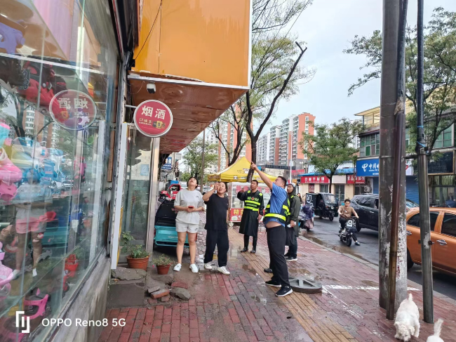 目前,累计出动执法人员100余人次,排查门头牌匾及户外广告牌800余个,排查积水主次干道11条,疏通下水道篦子23个。