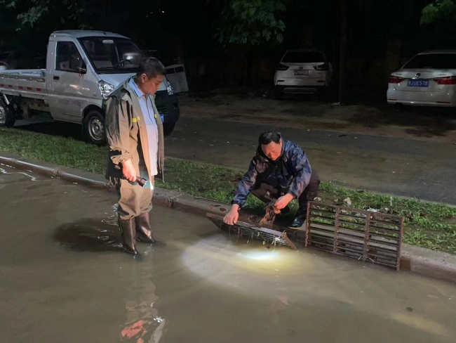 四、站稳安全岗。水不退,人不撤!县城市管理局全局干部职工始终坚守在防汛第一线,不畏风雨,不论昼夜,严防死守,时刻关注道路积水实情,及时更新易涝点实况,采取步行方式巡查,对道路排水井篦及时清理,防止杂物堵塞,保障排水畅通。同时对警示笼等警示标识做好检查,及时消除安全隐患,引导车辆行人有序绕行,确保道路畅通,群众出行安全。
