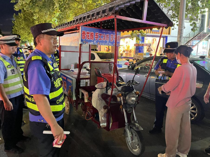三是强化联动,凝聚工作合力。城管执法队员与公安交警同频共振,分三个小组,分区域、分路段同步推进,部门联动打好整治“组合拳”。对流动摊点占道经营,责令当事人立行整改,并现场下达首次《不予行政处罚决定书》;对沿街餐饮店和夜市烧烤店进行现场规范,劝导不要在门头牌匾下摆放桌椅,不要占压人行通道,要铺设地垫并自备垃圾桶,做到“摊走地净”;对屡次违法经营户和拒不整改的流动摊点,依法下达《暂扣物品通知书》;对非机动车及机动车乱停乱放进行规范,要求停放者严格遵守《道路交通安全法》等相关规定,以免影响道路通行和行人安全。