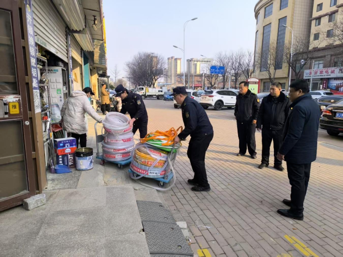 截至目前,累计出动执法人员150余人次,规范店外经营140余处次,清理占道经营110余处次,清除条幅14处,拆除废旧广告牌6处,拆除破旧门头牌匾5处,更新门头牌匾2处,拆除乱搭乱建4处,清理乱堆放大型废旧设备4台。